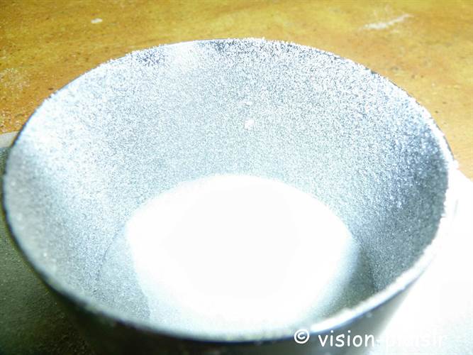 Après le temps de repos pour votre pâte, la sortir du réfrigérateur et disposer votre plaque de beurre. Plier en deux pour recouvrir le beurre. Étaler votre pâte et la plier en trois (tour simple). Voir la vidéo pour plus d’explications. Il faut rabattre un côté légèrement pour bien répartir tout le beurre correctement sur toute la pâte. Laisser reposer votre pâte pendant 20 minutes au réfrigérateur. Puis au bout des 20 minutes, l’étaler. Saupoudrer de sucre en poudre et la plier en 4 (tour double). Retour au réfrigérateur pendant 20 minutes. Après ce temps de repos, sortir votre pâte et l’étaler. Saupoudrer de sucre en poudre et la retourner, puis saupoudrer à nouveau de sucre en poudre. La plier en quatre et la remettre au réfrigérateur pendant 20 minutes. Pendant ce temps, beurrer et sucrer des cercles inox de 5 cm de haut et de 8 cm de diamètre. Beurrer un papier de cuisson et le saupoudrer de sucre en poudre. Déposer vos cercles sur votre papier de cuisson, sur une plaque à pâtisserie. Réserver.